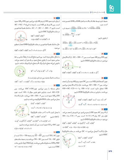 برای مثال، در بخش مربوط به دایره، ابتدا تعاریف پایه، اجزا و خواص دایره به دقت توضیح داده میشود. سپس با استفاده از تصاویر و نمودارها، قضایای مربوط به زاویهها و کمانها در دایره تبیین میگردد. هر نکته مهمی که ممکن است در تستها مورد توجه قرار گیرد، با کادربندی مشخص شده تا در مرور سریع، به راحتی قابل دسترسی باشد. این روش آموزشی، به شما اطمینان میدهد که حتی پیچیدهترین مباحث را نیز به صورت مفهومی درک خواهید کرد.